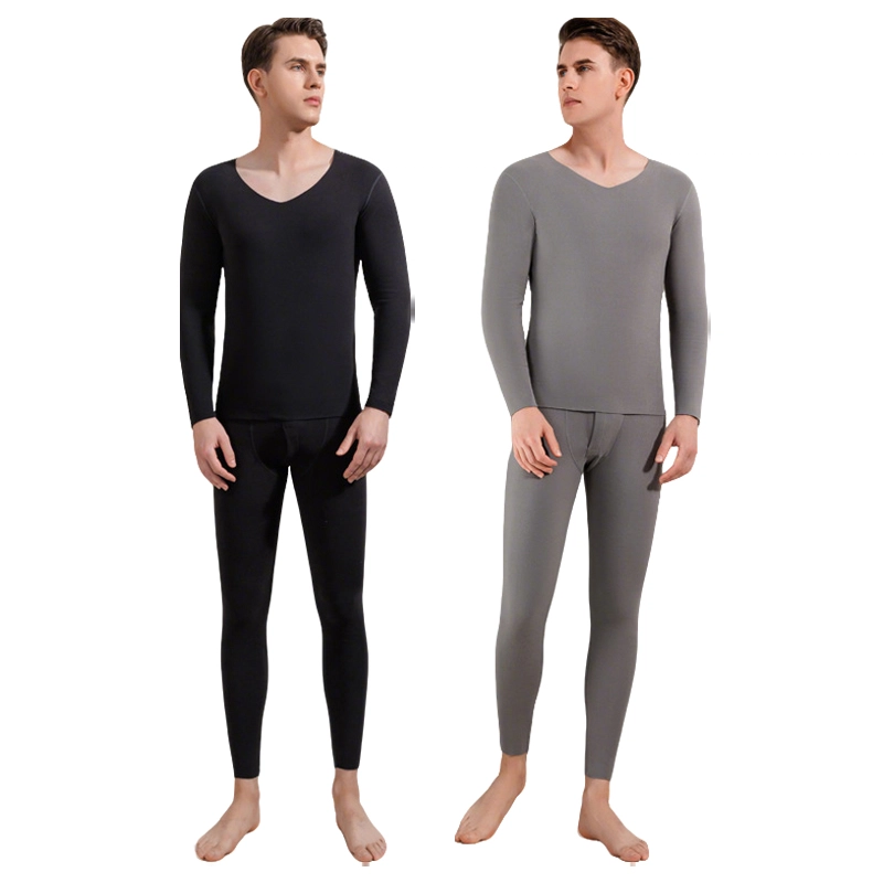 棉基因 抗菌加绒加厚内衣男士双面磨毛修身圆领百搭无痕舒适发热德绒打底秋衣秋裤秋冬季保暖套装 男款
