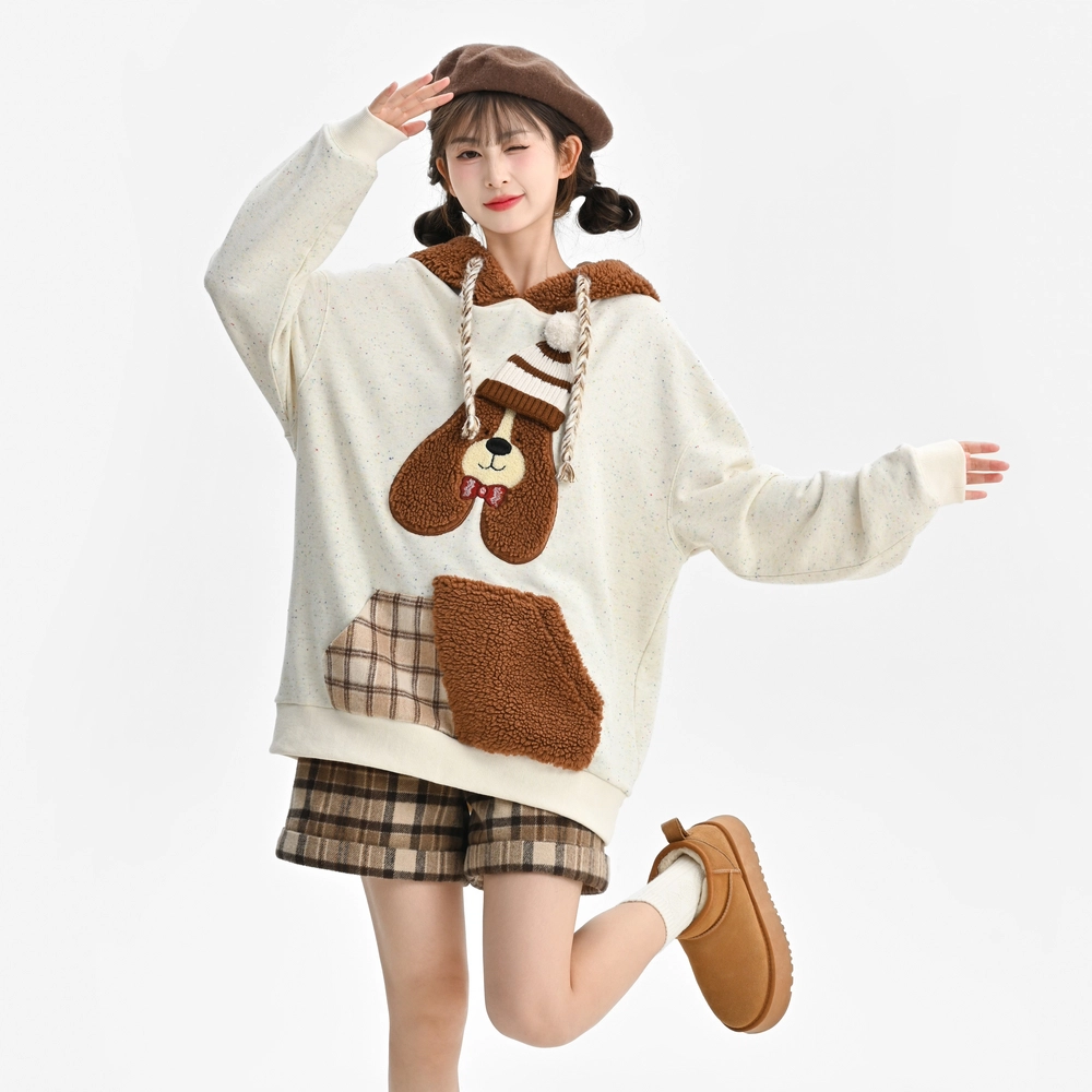 森女部落 潦草小狗闺蜜装连帽萌趣风拼贴套头可爱卫衣 女款