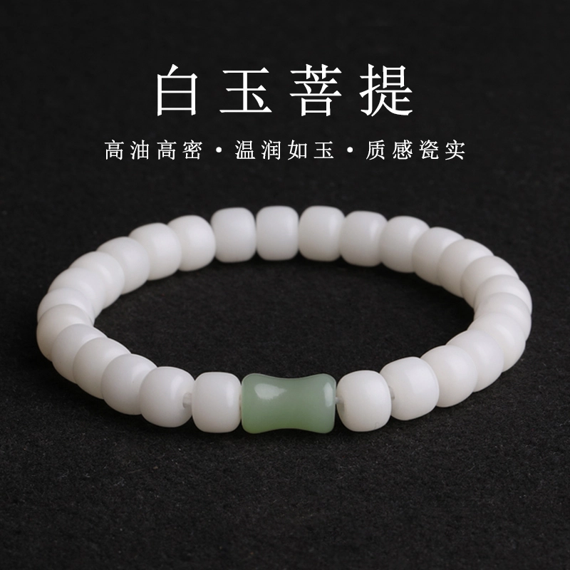 妍韵珠宝 和田玉竹节文玩 白玉菩提 手串 男女同款情侣款